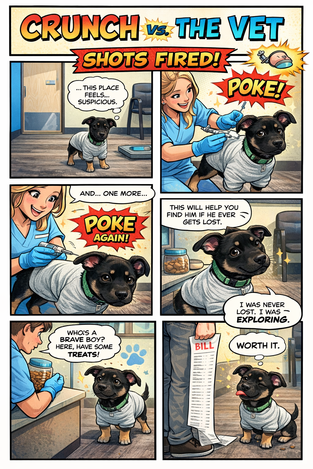 Surviving the Vet: Crunch’s Adventure and Snacks
