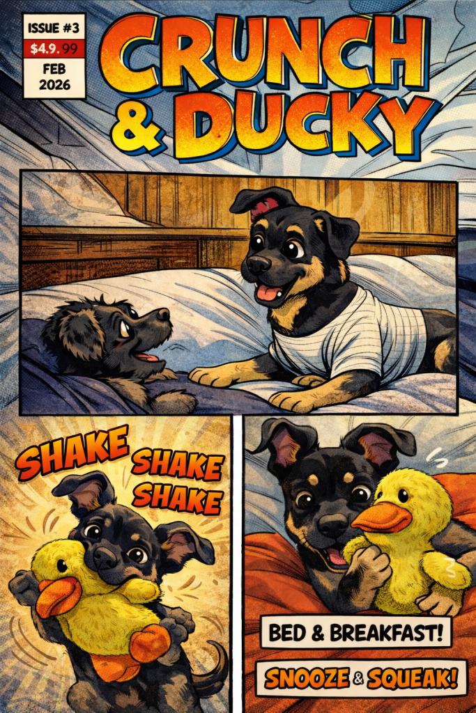 ON OCCASION, CRUNCH WILL PAUSE… STARE INTO THE DISTANCE… AS IF CONTEMPLATING THE MEANING OF LIFE, OR PERHAPS JUST LISTENING FOR THE FAINT SOUND OF A HUMAN STIRRING.